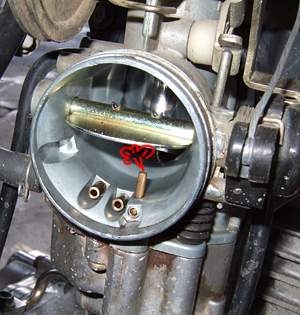 本来、上の写真のようにガソリンがキャブの内側に噴出されるはずですが