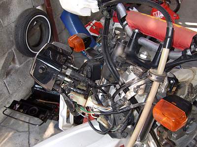 ヘッドランプをガバっとはずし、メータを上にはずしっと・・・・
