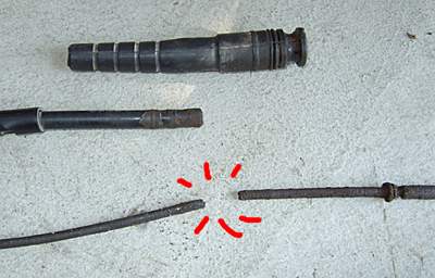 ケーブルのインナーを出すと、見事に切れてましたね。