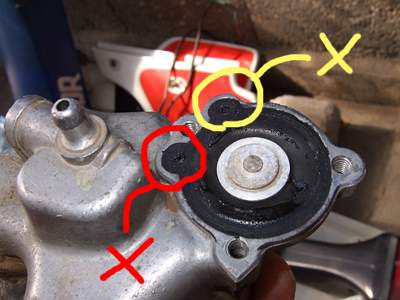 んで、先日応急処置で、Holtsのすき間シールで漏れ止めした加速ポンプでしたが