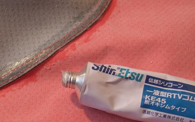 で、シートの裏側の縫い目に、シリコンをヌリヌリしておきます。