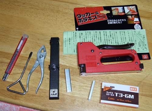 このタッカ・・・・ホチキスの下が無いだけの仕組みかと思っていましたが、バネの力で打ち込むのですね。