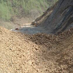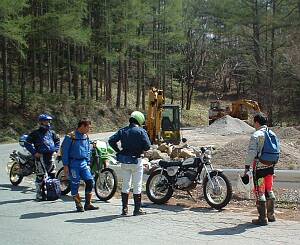 しばらく行くと・・・・なんと、土砂崩れ現場