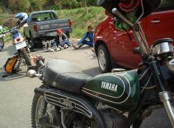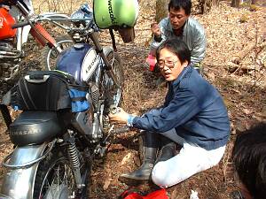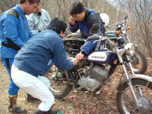 しかし・・・やはり調子が悪いということで、山の斜面でF4のキャブバラシ開始
