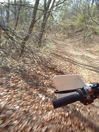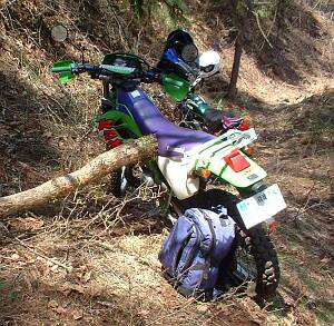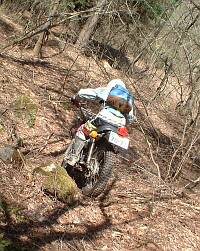 と、言いたいところですが、帰りの登りの林道で、フロントタイヤが溝にはまって