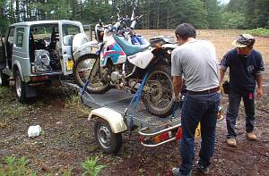 前日にステマロ号にバイクは積んでありますので余裕です。