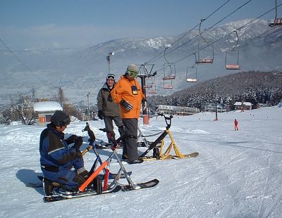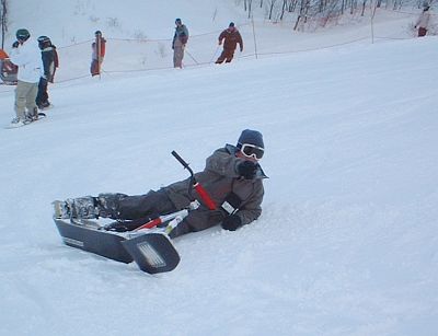 タナカさん、さすが慣れてる。。。。とりあえず、最初はタナカさんがいっしょに滑ってくれました。