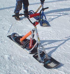 ハンドルを持って両足のまん中にスクートを置いてリフトに乗ります。