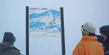 M井さん、白いものが・・・・どうも、3名は新雪バーンへ行きたいらしく、そこへのルートを探しています。