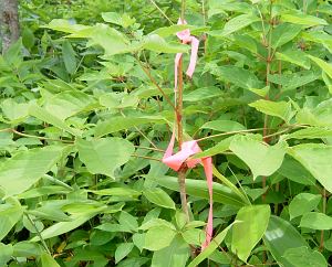 それにしても、途中にやたらピンクのリボンが木に縛ってありますが