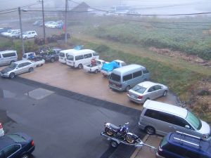 熊の湯温泉ですが、山の上はガスガス・・・こりゃぁ本日は走るのやめますかってことに。