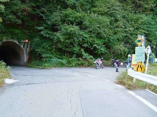 林道入り口付近の駐車場へ、青い流星号を停めます。