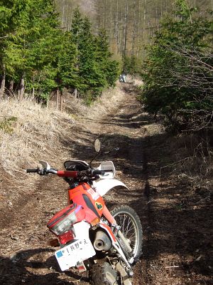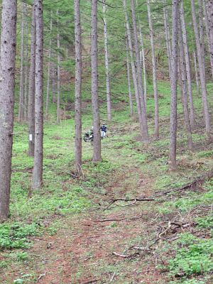 しばらく走り、先ほど食事した地点まで戻って別の林道へ入ります。