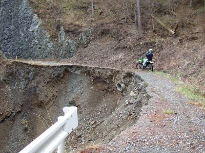 ここは、しばらく行くと、道が崩落しています。
