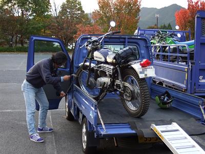 でっかいトラックのトランポで運んできていますが、TLMやKDXも積んであるのに