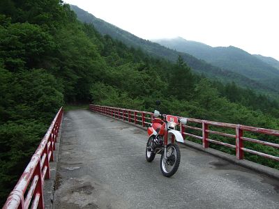 さらに、湯沢林道を進み、名物の赤い橋まで来ました。