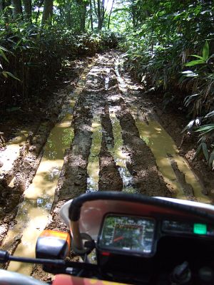 金倉林道となりますが、道幅も狭く、水溜りもそれなりにあり、ゆっくり走ります。