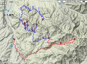 下のGPSデータの青軌跡の林道も行き止まりですが、意外と長いです。