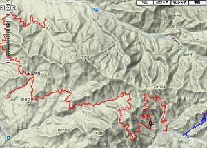 赤いのが、帰りの林道です。