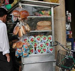 もとフランス領であったためでしょうか、フランスパンやクロワッサンなどのパンやサンドイッチが街角でよく売られています。