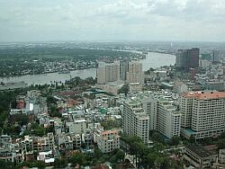 結構高いビルなどもあります。大きな川は「サイゴン川」です。